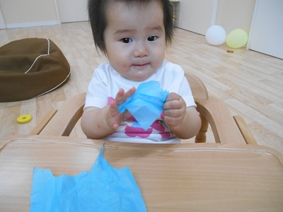 お部屋に戻ってから、花紙をやぶったり、にぎったり。