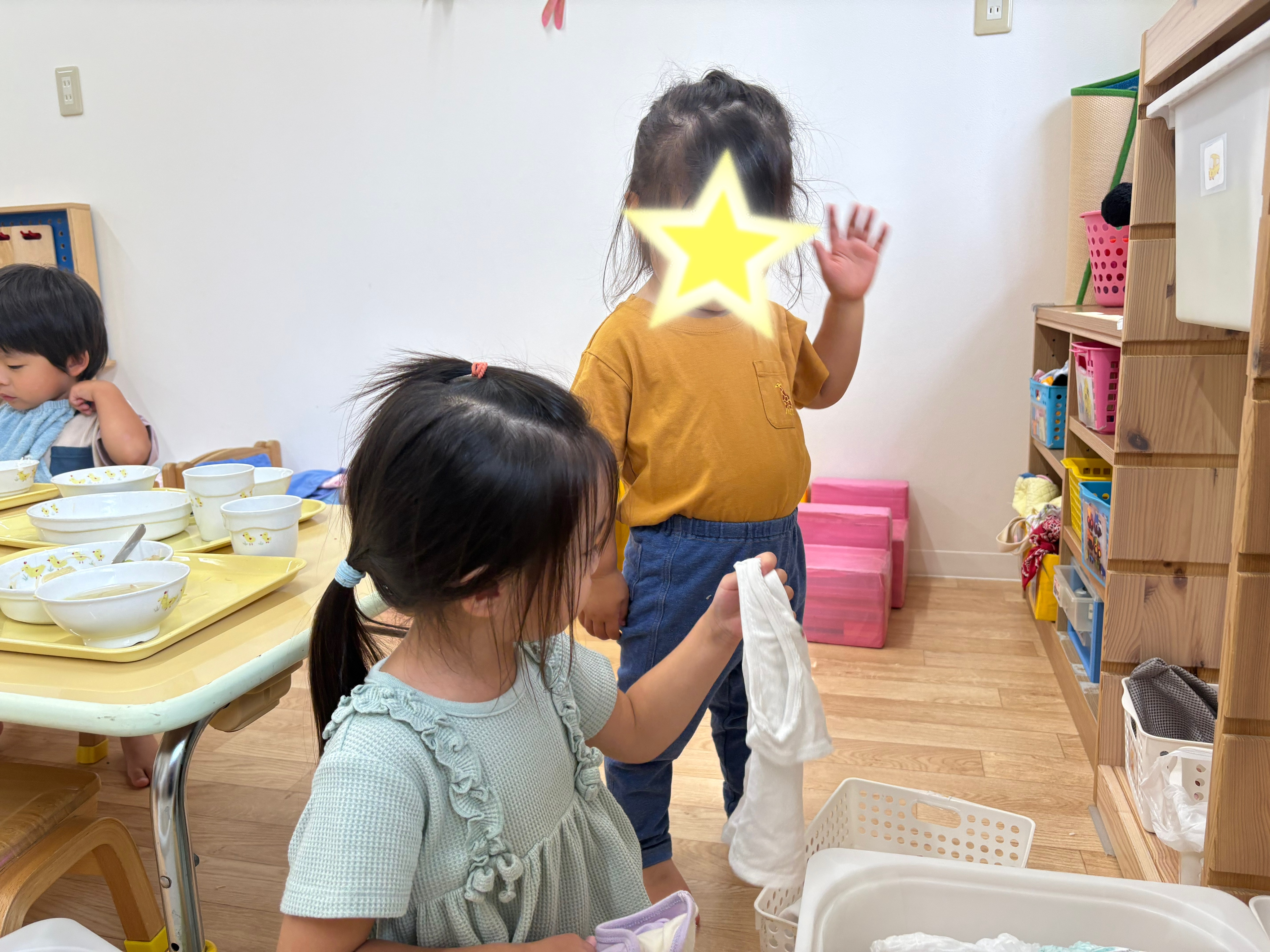 「あ、○○ちゃんも一緒に片付けに行く?」と他のお友だちを誘う姿もありました。