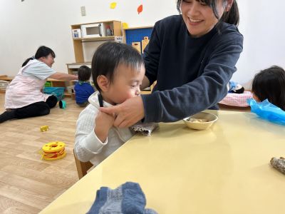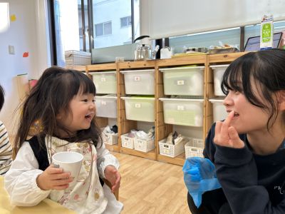 保育士たちにおひげを見てもらってとても嬉しそうなおともだちです♪