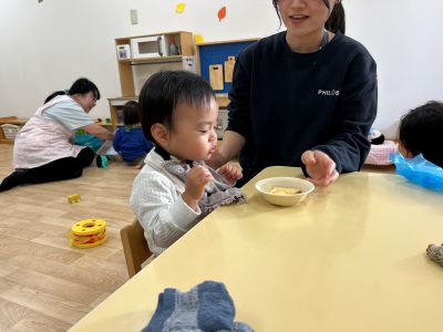 おやつを食べて、元気いっぱいに遊びに行っていました!