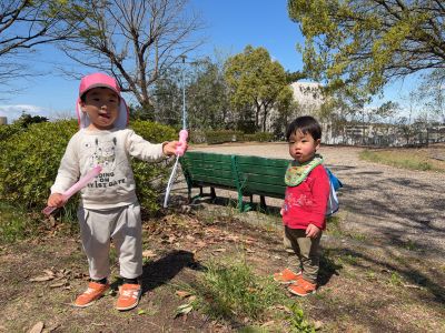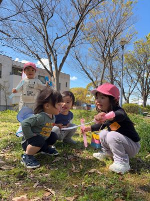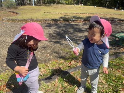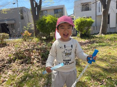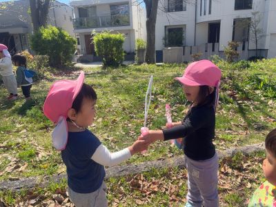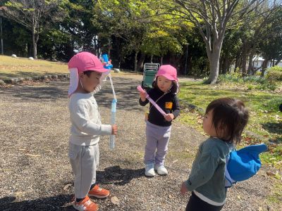 この日は風が強くて、しゃぼん玉を作ると風に乗ってあっという間に飛んでいきました!