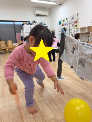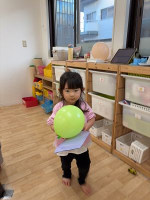 風船を乗せて落とさないようにそーっと運ぶお友だちも♪