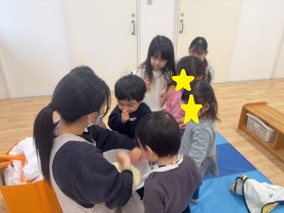また、難しいと感じるところは保育士がさりげなく手伝ったり、できた時にはしっかり褒めたりしながら、「自分でできた!」と子どもが感じられるようにしていきたいと思います☆