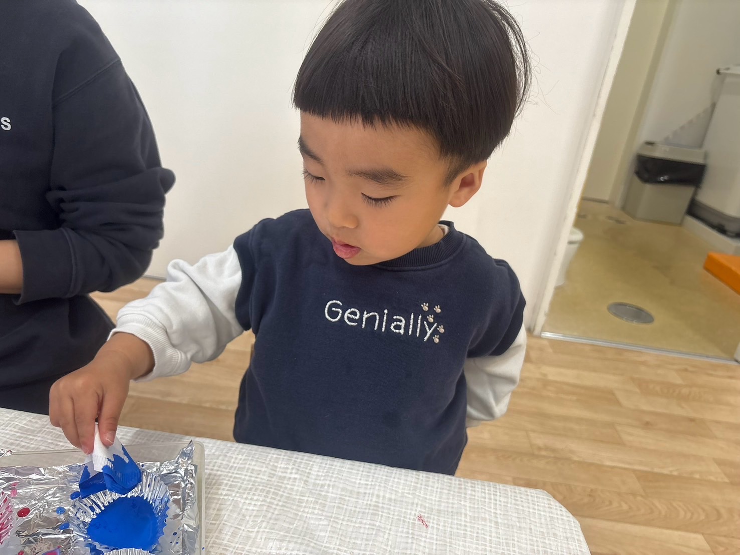 まずはエプロンとタオルを自分で探すお友だち。