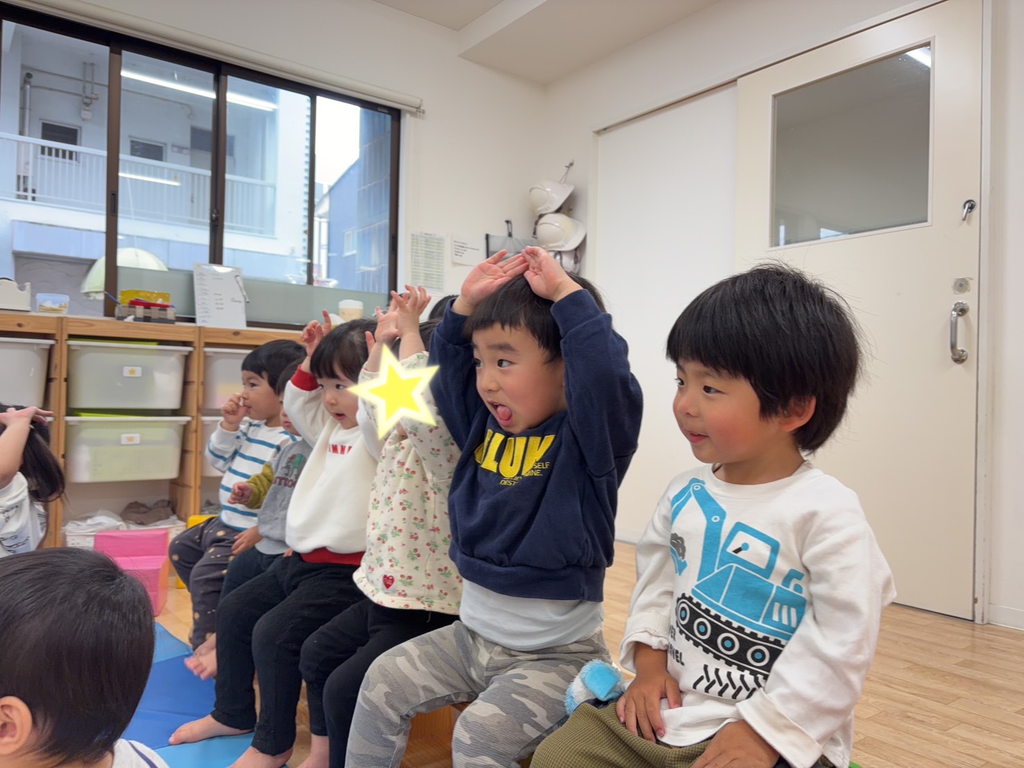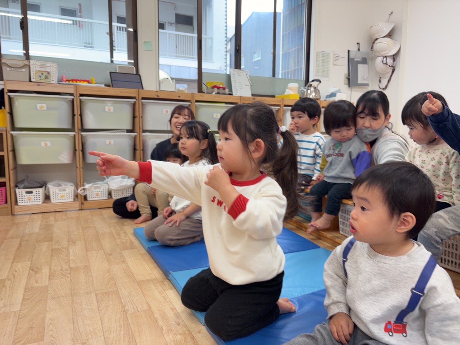 まずは手遊び「いひひでうれしいひなまつり」からスタート!