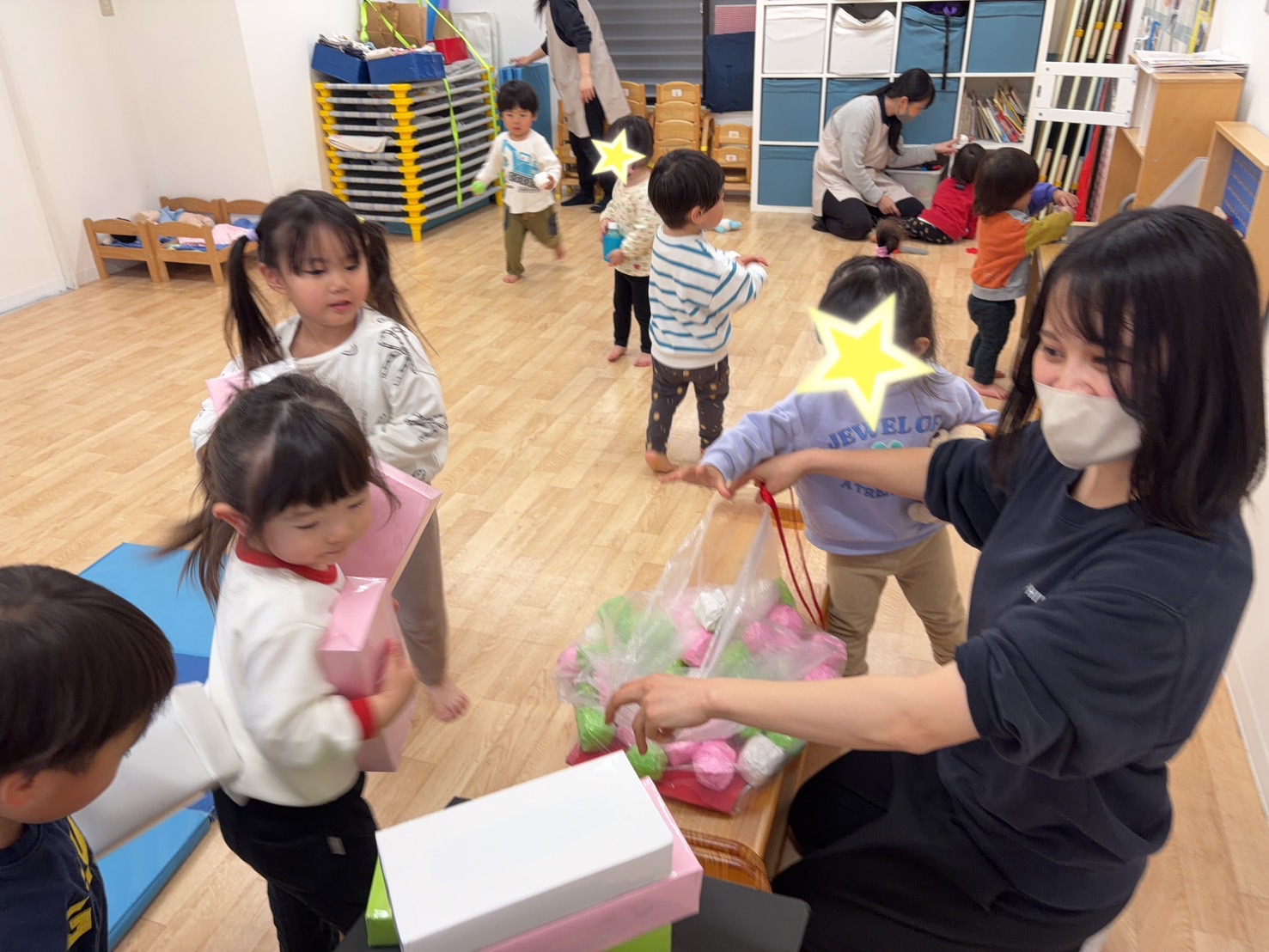 お店屋さんのように「いらっしゃいませ~!」と配っている子もいましたよ。