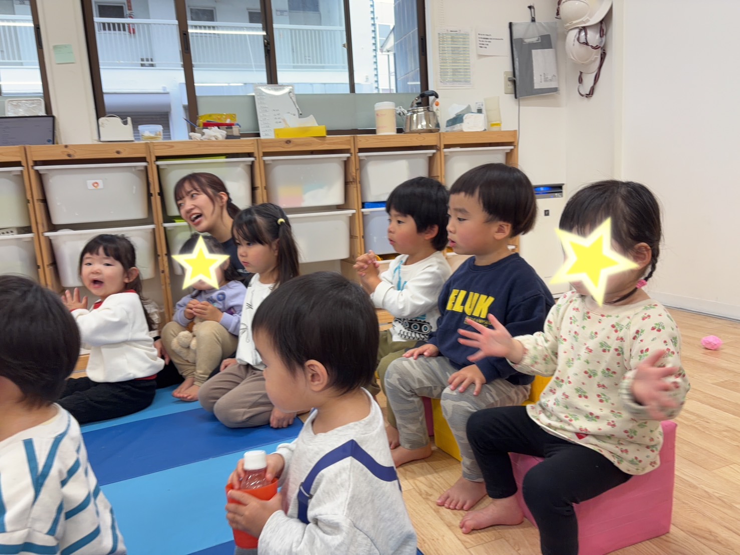 保育士たちにおひげを見てもらってとても嬉しそうなおともだちです♪