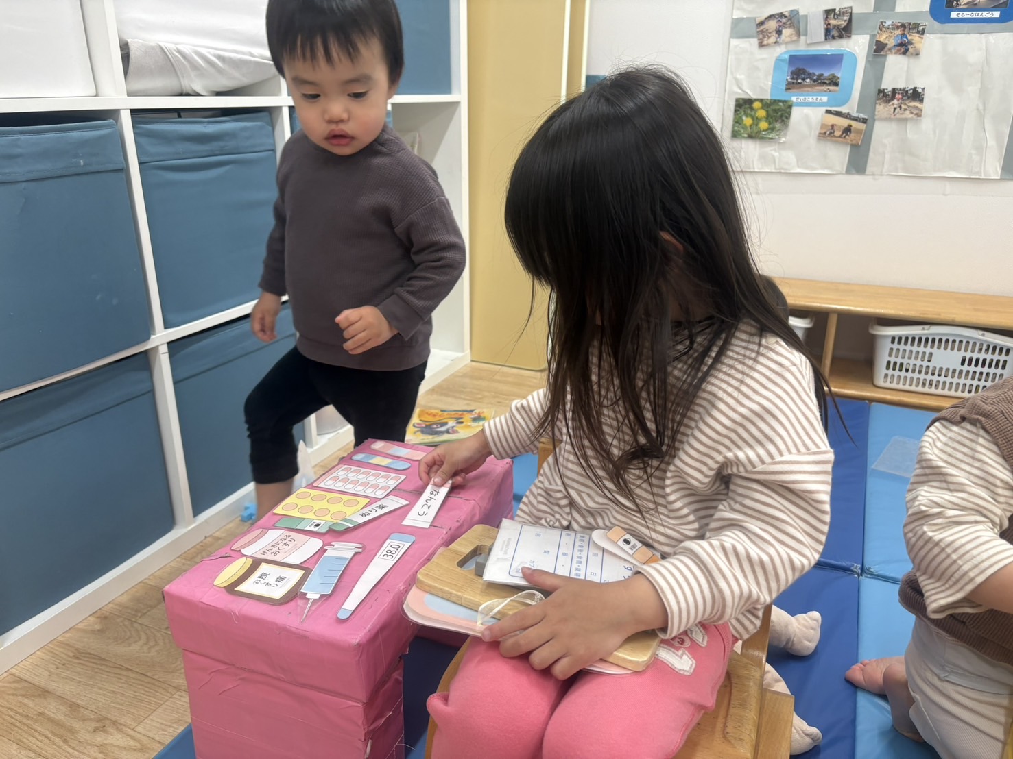 お医者さんになりきるお友だち。