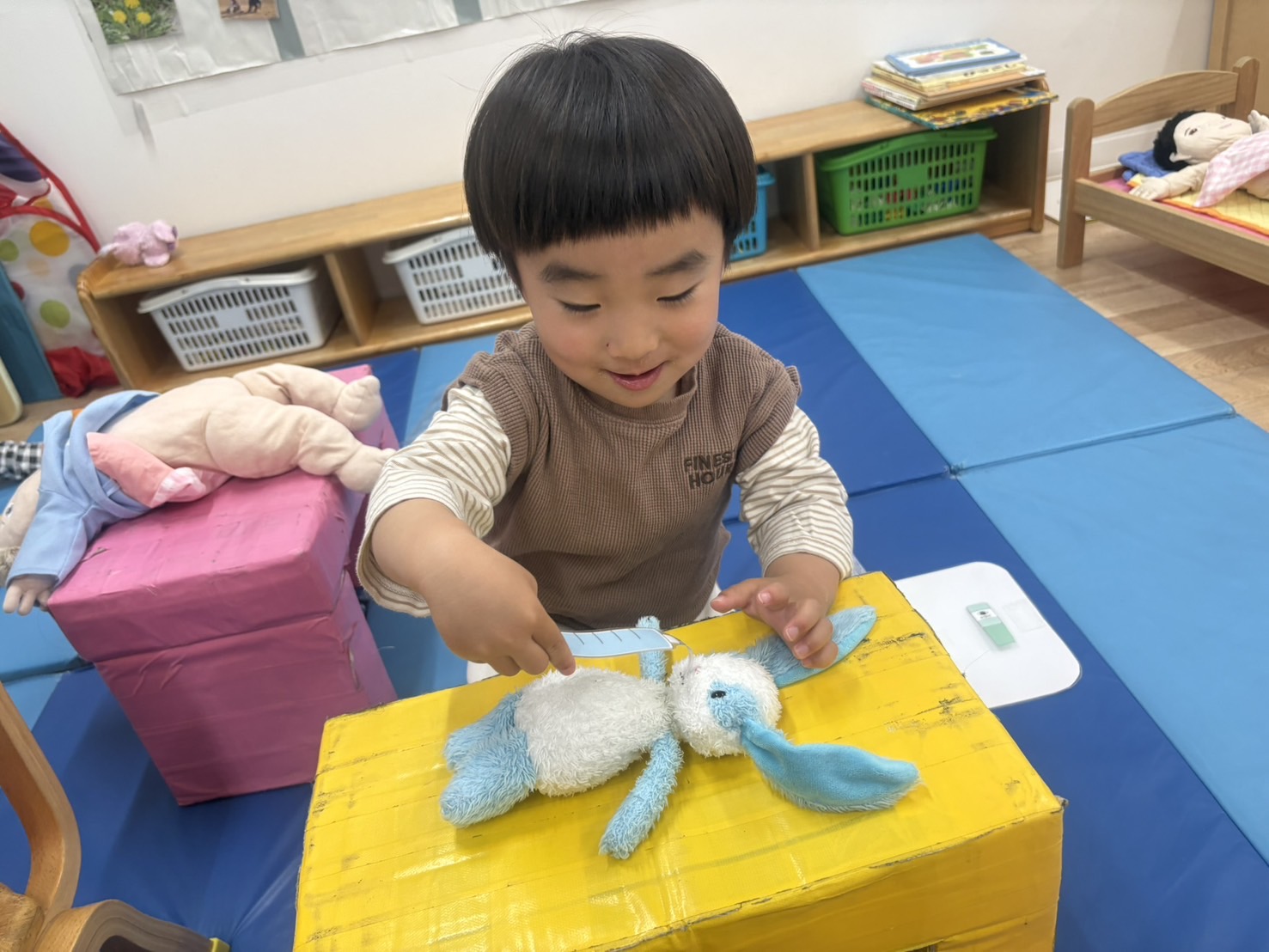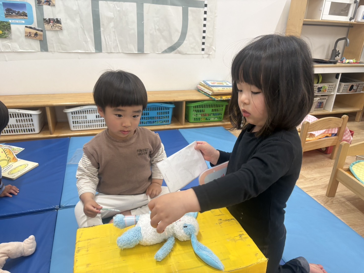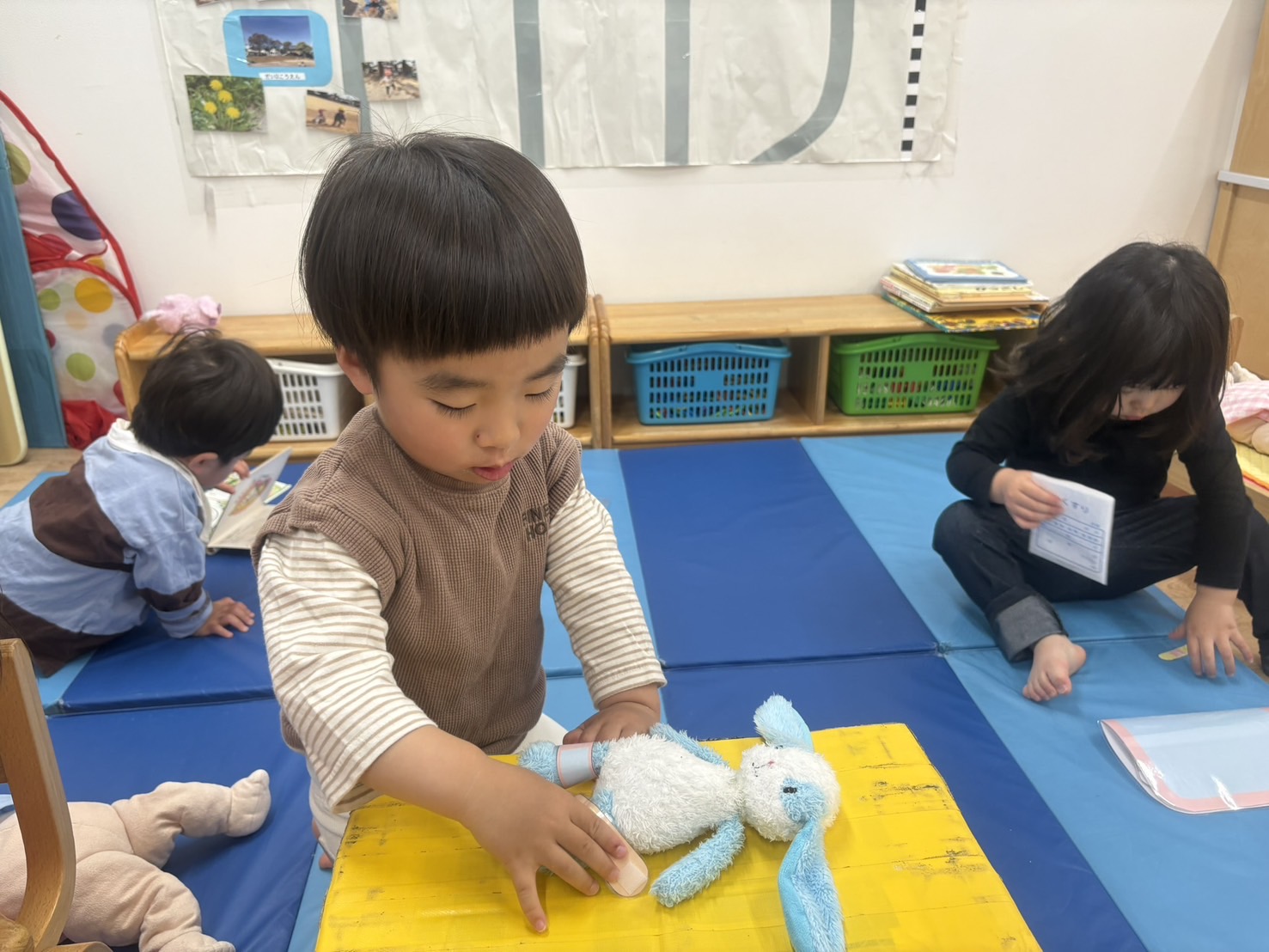 「僕も貼る!」と、うさぎさんに絆創膏を貼ってあげる姿もありました。